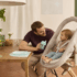 Trona práctica (6-36 meses): Cuando llega el momento del destete, se convierte en una trona funcional. Ajusta la altura mediante su cómodo pedal para que tu hijo comparta la mesa con toda la familia.